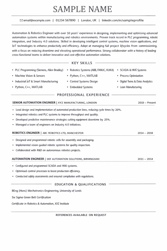 Your CV should align seamlessly with your LinkedIn profile. Many employers in the automation and robotics sector will review both before inviting you to interview. Ensure consistent job titles, project descriptions and technical keywords.