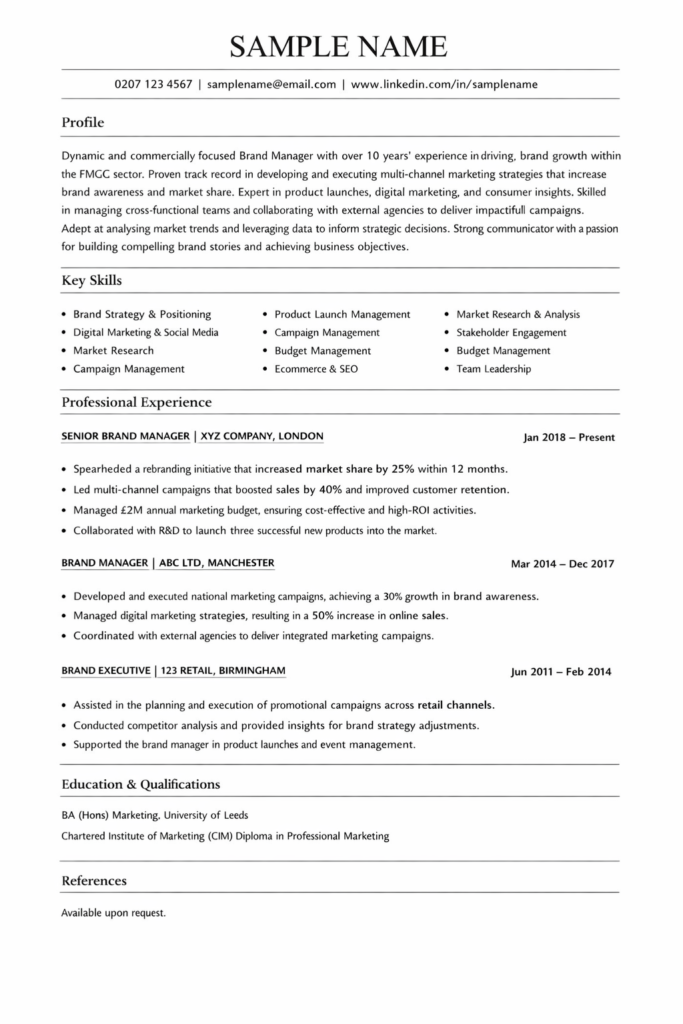 Cover areas such as brand positioning, market analysis, consumer insight, competitor analysis, product development, campaign planning and cross functional collaboration. If you have worked with agencies, retailers or global teams, make that clear. Brand Management is rarely done in isolation and stakeholder management is a highly valued skill in the UK market.