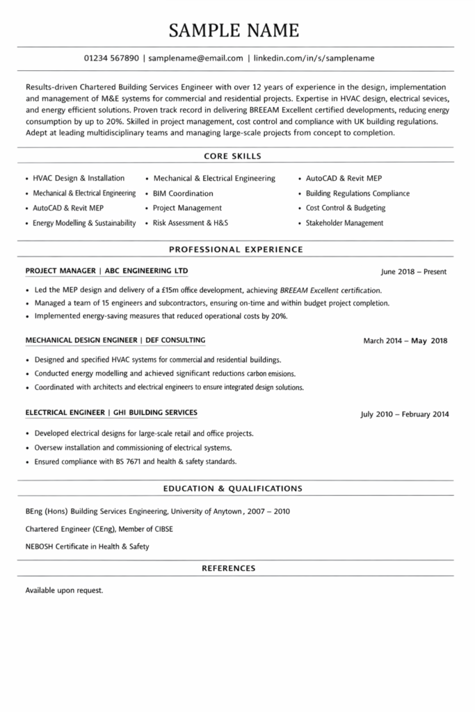 Your academic background and professional credentials are crucial. Include your degree in Building Services Engineering, Mechanical Engineering or Electrical Engineering.
