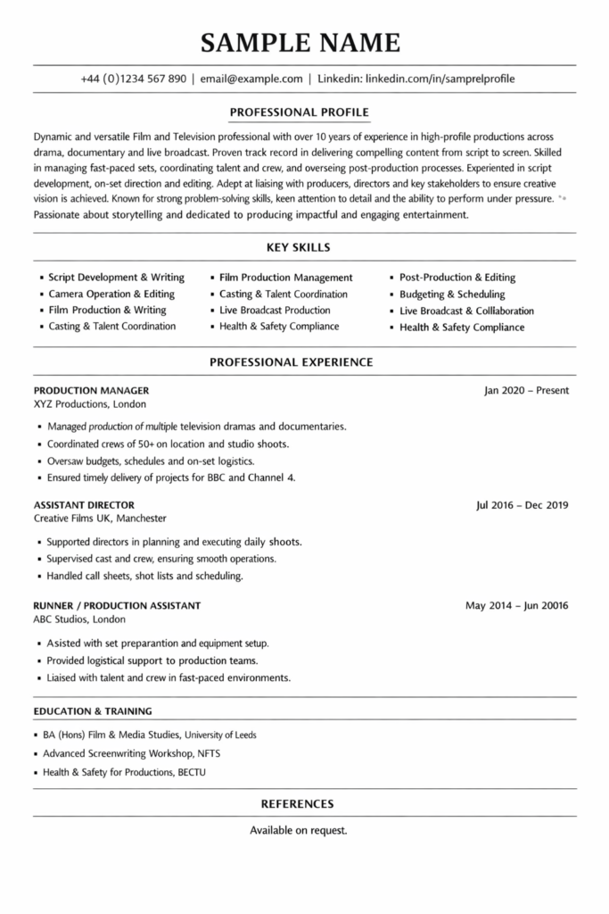 For emerging professionals seeking a Film and Television CV template UK employers respect, remember that quality presentation reflects industry standards. Formatting should be clean, easy to read and no longer than two pages for most roles. Actors may use a one page performance CV alongside a showreel.