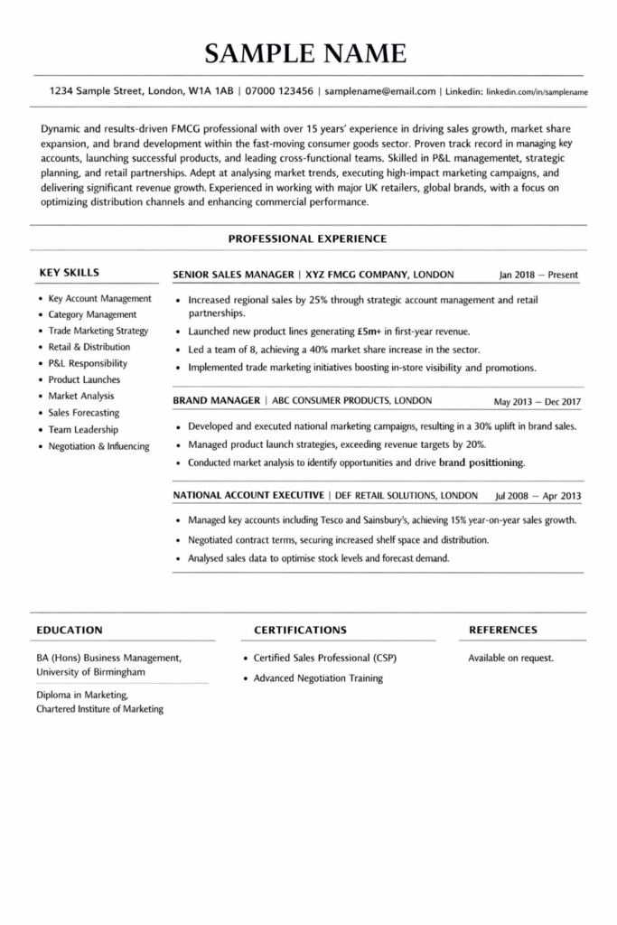 Recruiters in the Fast Moving Consumer Goods sector expect to see metrics. Include percentage growth, revenue figures, margin improvements, distribution increases, cost reductions, and market penetration data wherever possible. This approach strengthens your CV template UK structure and ensures your document stands out in competitive applicant tracking systems.