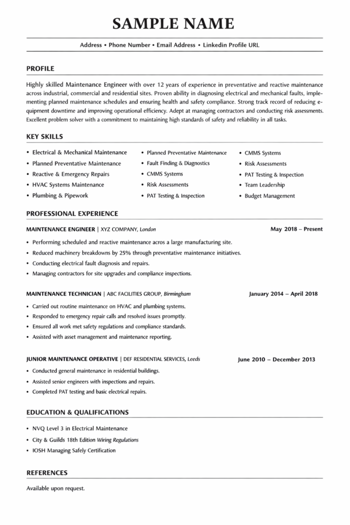 Then use concise bullet points to outline responsibilities and achievements. Ensure that important maintenance keywords are naturally integrated throughout. Terms such as asset management, emergency repairs, contractor management, facilities maintenance and compliance inspections should appear where relevant.