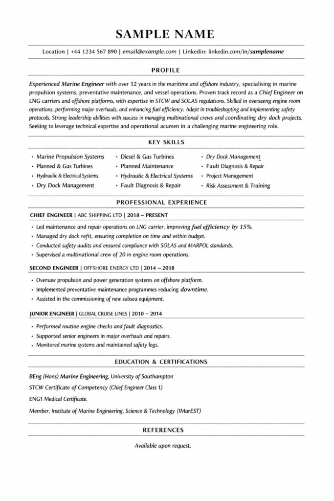 As a Marine Engineer, you operate in one of the most technically demanding and globally respected professions. Your CV should reflect that confidence. Do not undersell your experience at sea, your leadership in high pressure environments, or your contribution to vessel safety and operational excellence.