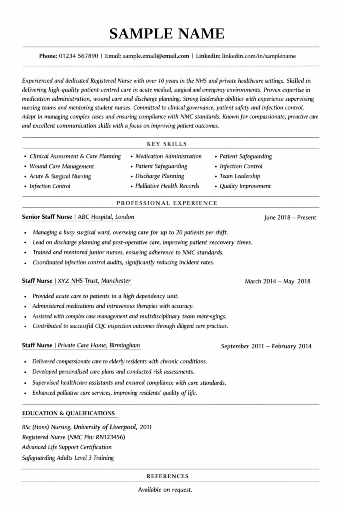If you are applying for senior or specialist roles, add skills such as staff supervision, mentoring student nurses, clinical audit, policy implementation, service improvement and budget awareness. The aim is to align your Nursing CV with the job description while remaining truthful and authentic.